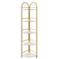 Finisajul auriu adaugă un accent de lux, iar efectul marmură al rafturilor aduce un strop de sofisticare în decorul casei tale. Designul compact și funcțional al raftului pentru colț face ca acesta să fie ideal pentru spațiile mai mici, economisind loc fără a compromite stilul sau utilitatea.