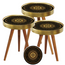 Set 3 Masute Cafea – Marimi Diferite, Blat Mandala Negru cu Auriu, Picioare Lemn Natural, Design Elegant si Luxos