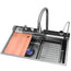 Set chiuveta bucatarie multifunctionala, otel inoxidabil, statie de lucru, dus extractabil, 4 moduri de spalare, spalator pahare, dozator sapun, accesorii scurgere incluse